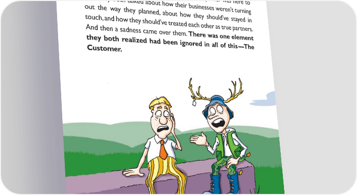 Joe and Bill talked on the phone and decided to sit down in person, for the 昀椀rst time in ages. Bill was surprised at how old Joe looked. Joe quietly thought the same of Bill. At 昀椀rst they talked about how they could beat the Loudspeaker, but they reluctantly concluded that the Loudspeaker was here to stay. They both talked about how their businesses weren’t turning out the way they planned, about how they should’ve stayed in touch, and how they should’ve treated each other as true partners. And then a sadness came over them. There was one element they both realized had been ignored in all of this —The Customer. 12