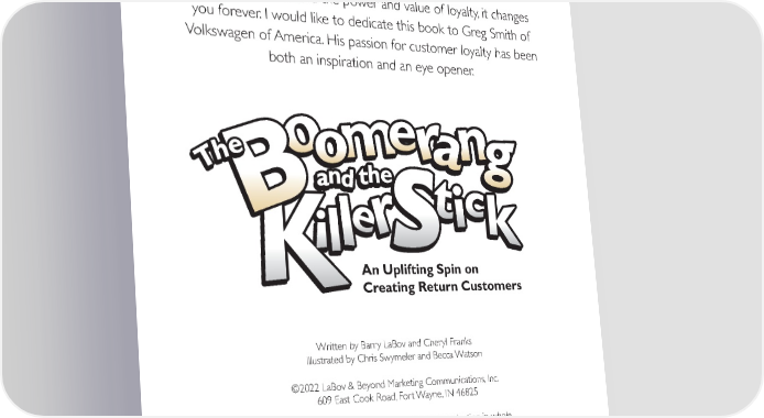 Foreword Once you understand the power and value of loyalty, it changes you forever. I would like to dedicate this book to Greg Smith of Volkswagen of America. His passion for customer loyalty has been both an inspiration and an eye opener. An Uplifting Spin on Creating Return Customers Written by Barry LaBov and Cheryl Franks Illustrated by Chris Swymeler and Becca Watson ©2022 LaBov & Beyond Marketing Communications, Inc. 609 East Cook Road, Fort Wayne, IN 46825 All rights reserved, including the right of reproduction in whole or in any form except for personal use or review. The purpose of this book is to educate and entertain. The author has neither liability nor responsibility to any person or entity with respect to any loss or damage caused, or alleged to be caused, directly or indirectly, by the information contained in this book.