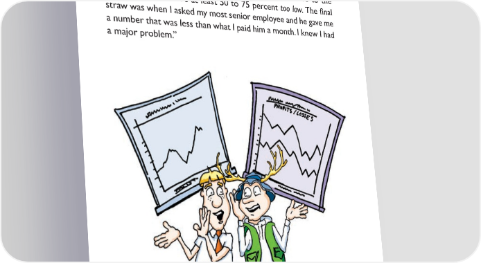 bill tried to contain himself, but couldn’t help a laugh, “No, i’m afraid of the opposite. i wanted to share our pro昀椀t for years but had the same fear, until one day i polled my employees — i asked them privately how much money they thought it cost to keep our doors open on an average month. i thought they’d be pretty accurate, but i was wrong. Not one of them was close to the number — most were at least 50 to 75 percent too low. The 昀椀nal straw was when i asked my most senior employee and he gave me a number that was less than what i paid him a month. i knew i had a major problem.” 15