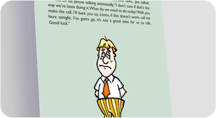 He looked up at this clock — it was 5:30 p.m. I know I have something to do tonight. What is it — kid’s soccer? Theater? Business club meeting? He went to his computer and accessed his calendar — Oh, that’s right. I have dinner with my old friend. He jumped into his car and raced to the restaurant. He was late — but his friend usually was, too. “bill, over here,” Joe called. bill was on his phone talking animatedly, “i don’t care if that’s the way we’ve been doing it. what do we need to do today? well, you make the call, i’ll back you up. listen, if this doesn’t work, call me here tonight. i’ve gotta go, it’s not a good time for us to talk. good luck.” 7